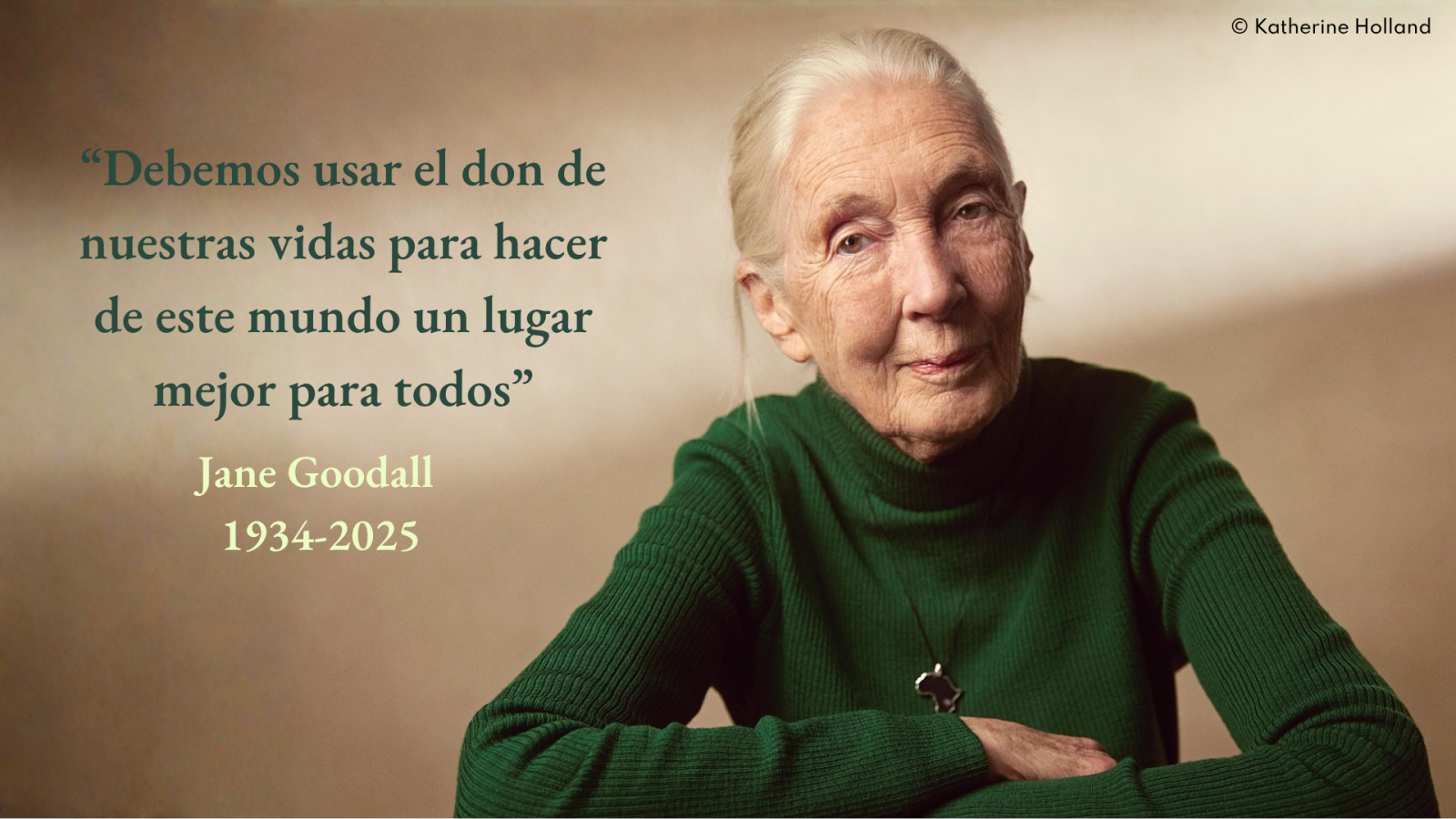 La infinita tristeza que nos inunda se mezcla con una indescriptible sensación de gratitud hacia Jane por todo lo que ha hecho por la naturaleza, por nosotr@s y por l@s que vienen detrás. Las innumerables muestras de afecto y condolencias que nos llegan nos dan más fuerzas y nos revelan el profundo impacto que Jane ha tenido en varias generaciones. Su vida merece ser celebrada, con alegría y con orgullo por haber tenido entre nosotr@s a un ser humano tan único, que nos ha empoderado mostrándonos todo lo bueno que también es capaz de hacer nuestra especie.